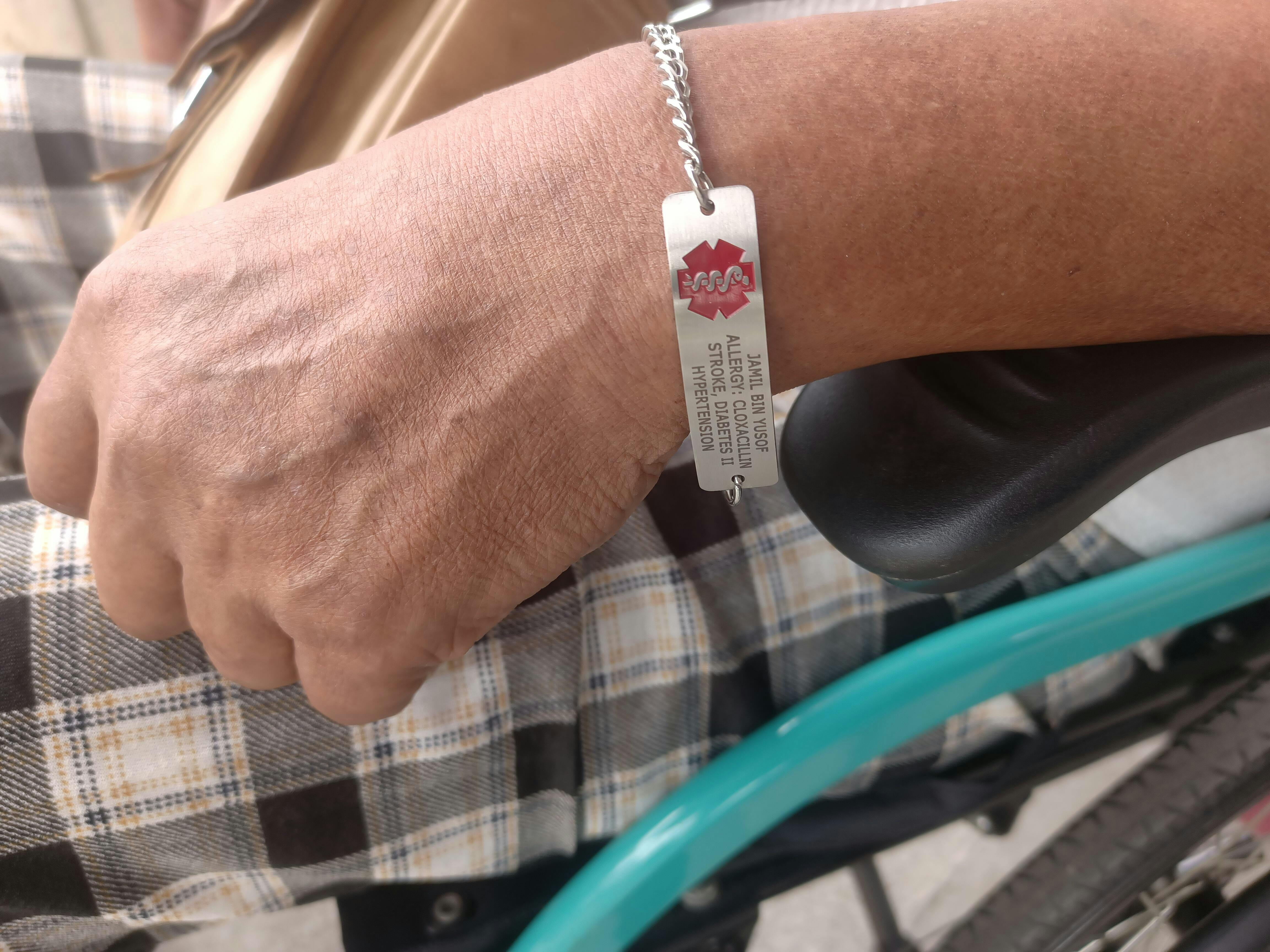 It's total length is 22 cm length chain and the size is adjustable according to your wrist. The front has a medic alert symbol at the left side of the tag with 12mm x 12mm in size.